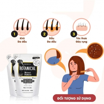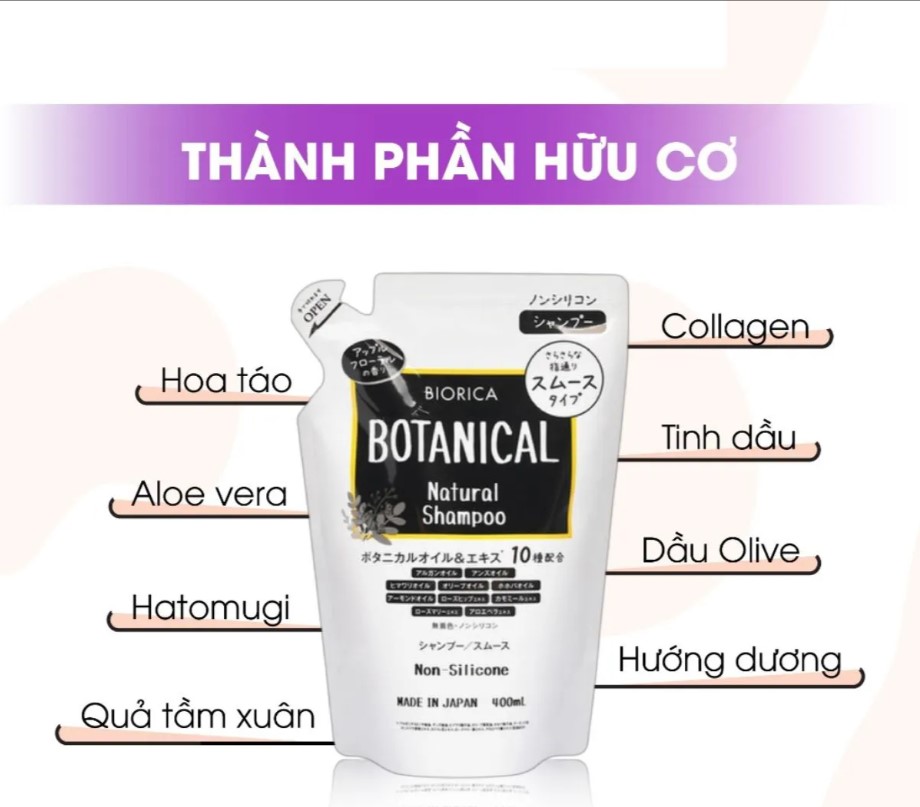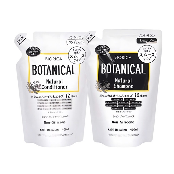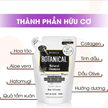 Bộ Dầu Gội Xả Biorica Botanical Natural Non – Silicone Túi 400ml với các thành phần có nguồn gốc từ thực vật và không chứa silicon giúp giảm tình trạng tóc chẻ ngọn và khô xơ, giảm rụng tóc hiệu quả, kích thích mọc tóc cho tóc mềm mượt và bồng bềnh mà không gây kích ứng da đầu, giúp duy trì da đầu khỏe mạnh và mái tóc óng ả.