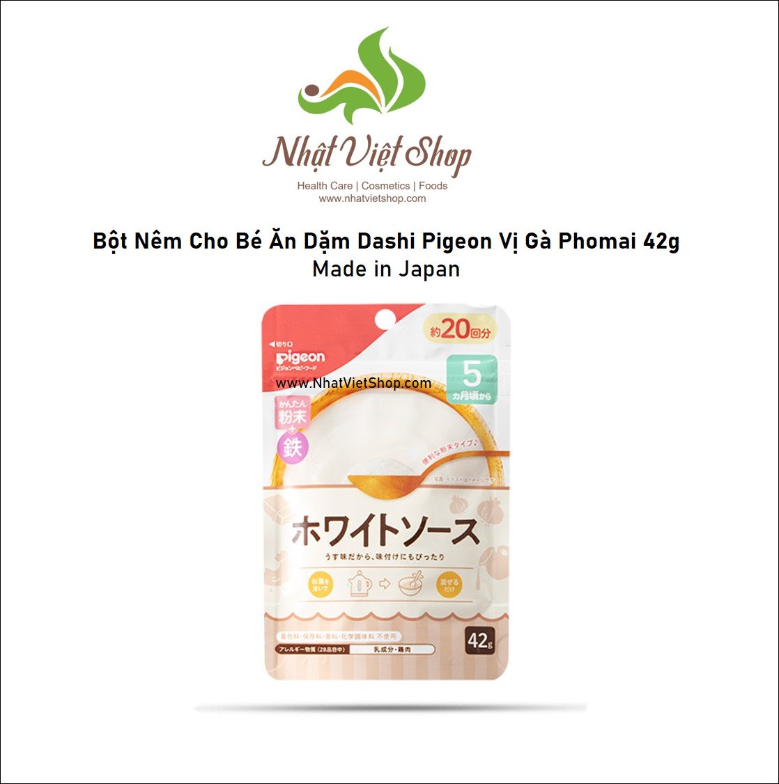 - Nước dùng Dashi Pigeon vị gà-phomai trọng lượng 42 g và mỗi gói dùng được khoảng 20 lần tùy thuộc vào nhu cầu sử dụng cho từng món ăn