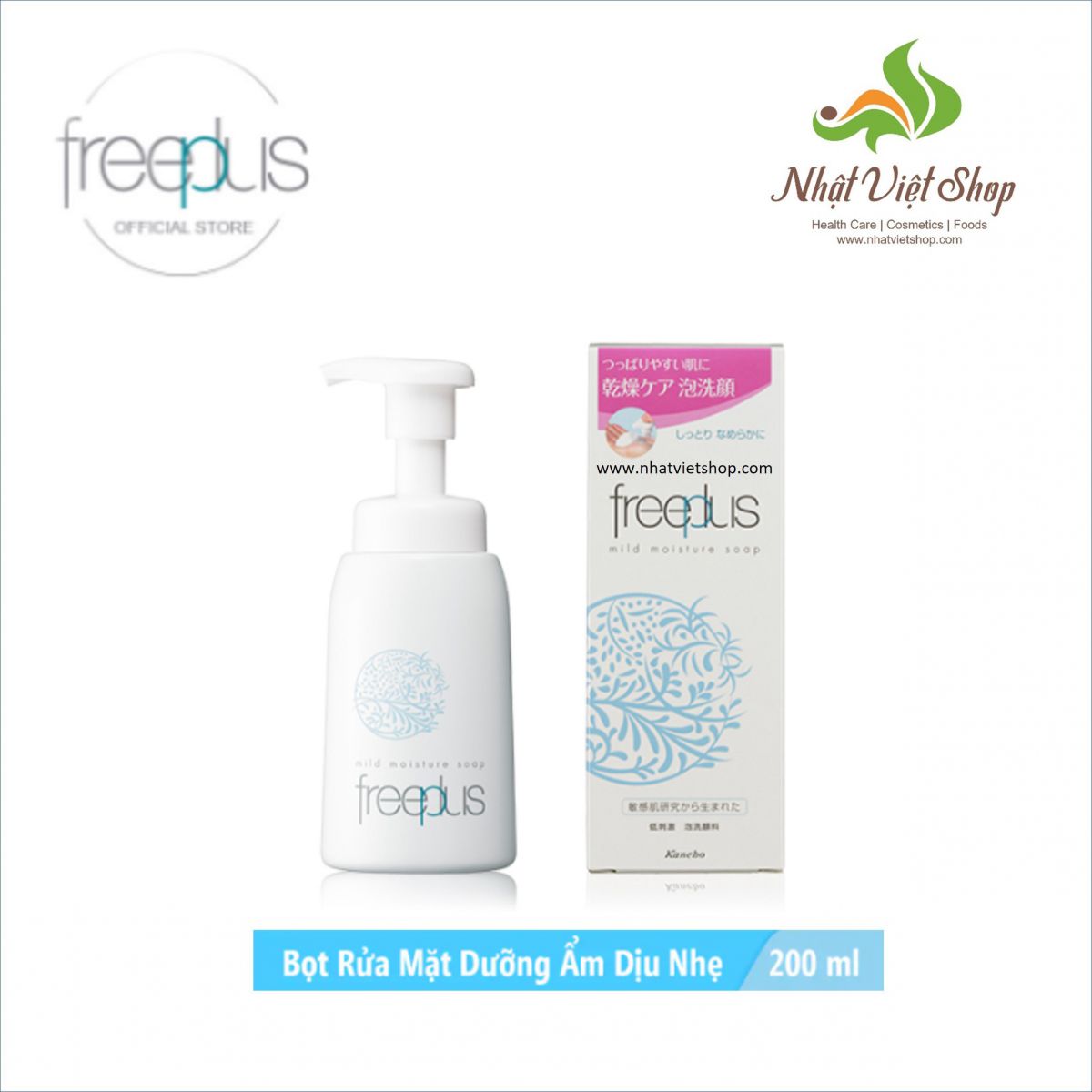 Bọt Rửa Mặt Freeplus Mild Moisture Soap là sản phẩm sữa rửa mặt đến từ thương hiệu mỹ phẩm Freeplus (thuộc tập đoàn Kanebo Cosmetic Nhật Bản), với kết cấu dạng bọt mịn giúp làm sạch dịu nhẹ dành cho da nhạy cảm, đồng thời cung cấp độ ẩm, mang lại cho bạn làn da mềm mại và mượt mà, không khô căng sau khi rửa mặt.