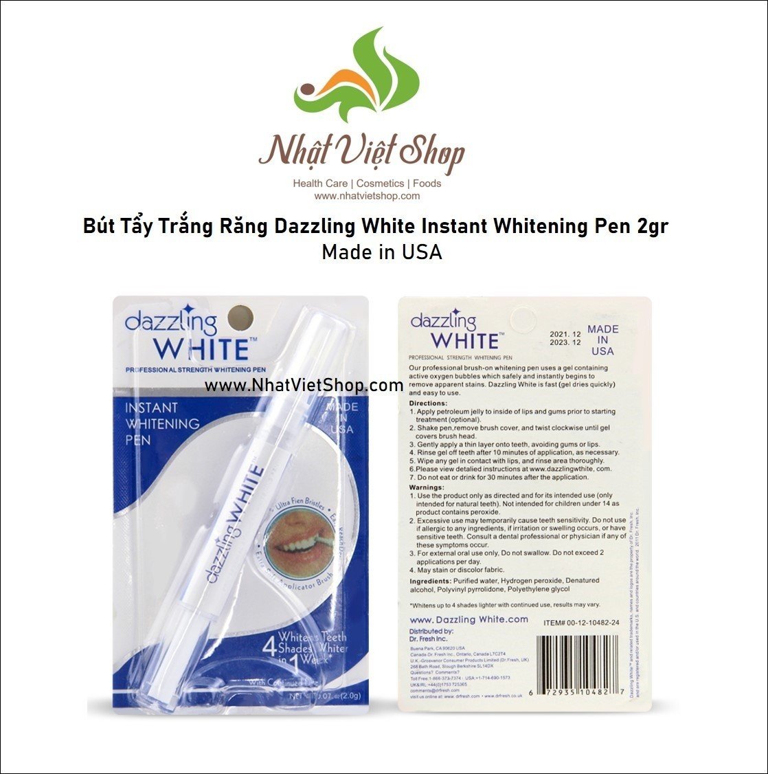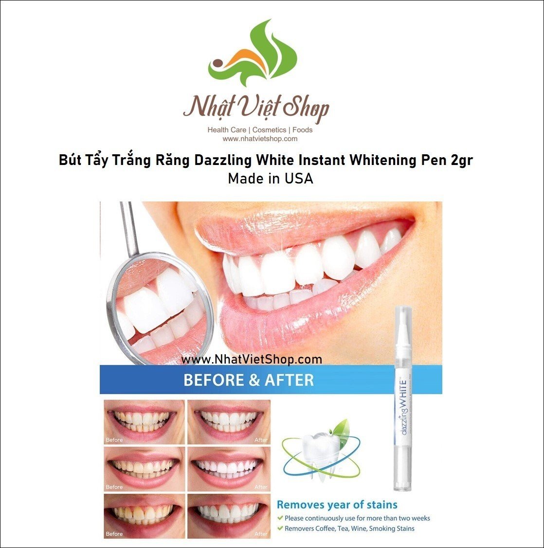 - Bút tẩy trắng răng Dazzling White Instant Whitening Pen sẽ giúp bạn có được hàm răng trắng sáng hơn 4 cấp độ chỉ sau 1 tuần sử dụng. Không cần phải đi nha sĩ tẩy trắng răng đôi khi gây ê buốt răng. Không mất nhiều tiền mà bạn vẫn có thể có được hàm răng trắng sáng như mình mong muốn.