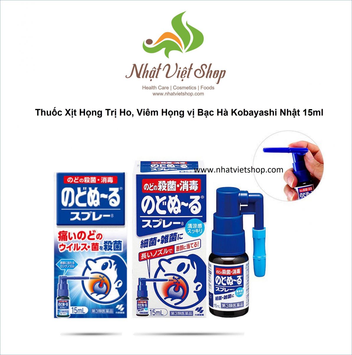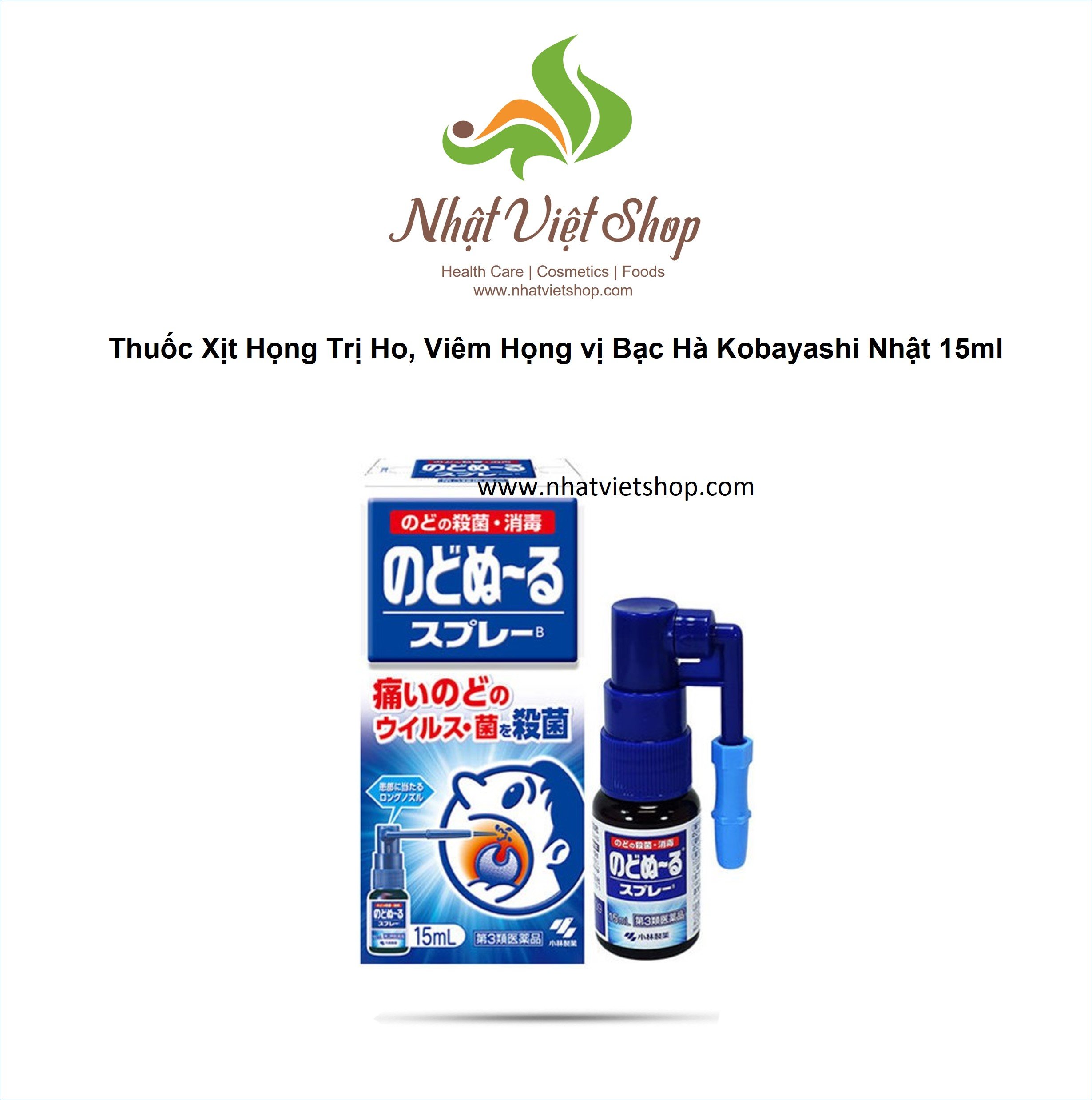 • Dung Dịch Xịt Họng Trị Ho, Viêm Họng Kobayashi Nhật 15ml