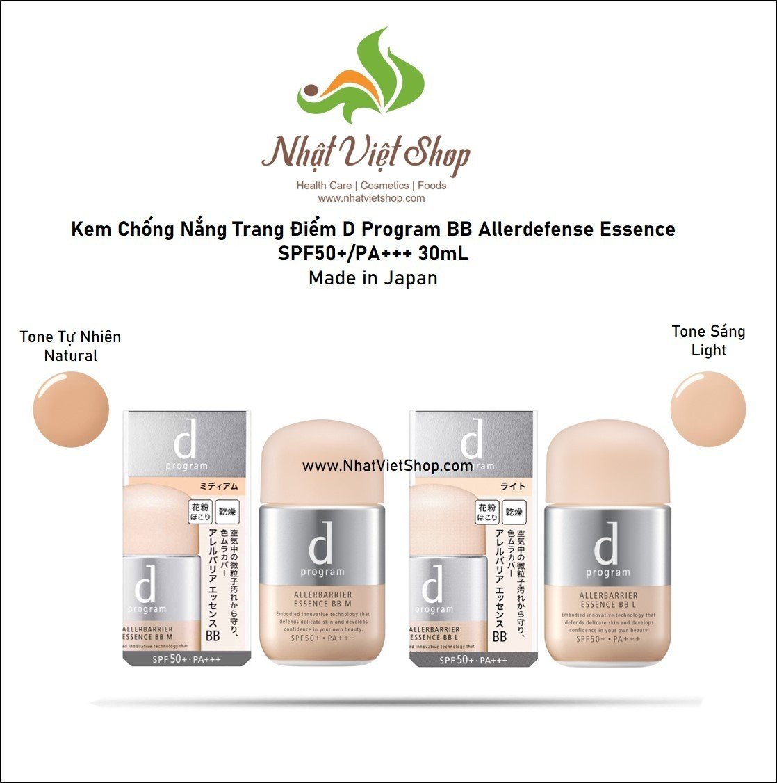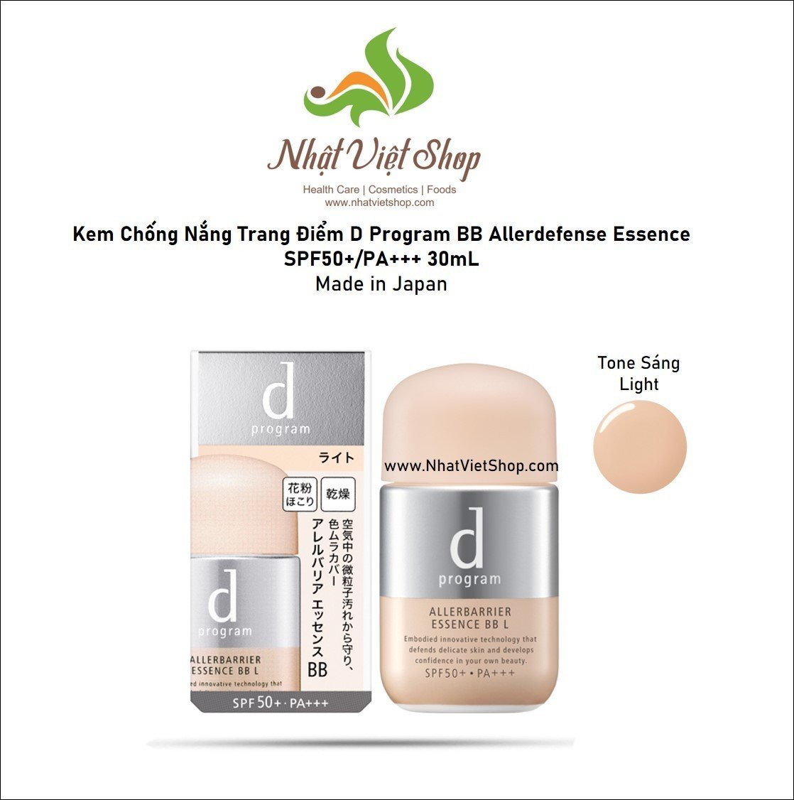 - Tinh Chất BB Chống Nắng Trang Điểm D Program Allerdefense BB L SPF50+ PA+++ 30ml với kết cấu mỏng nhẹ, ngăn bóng dầu.