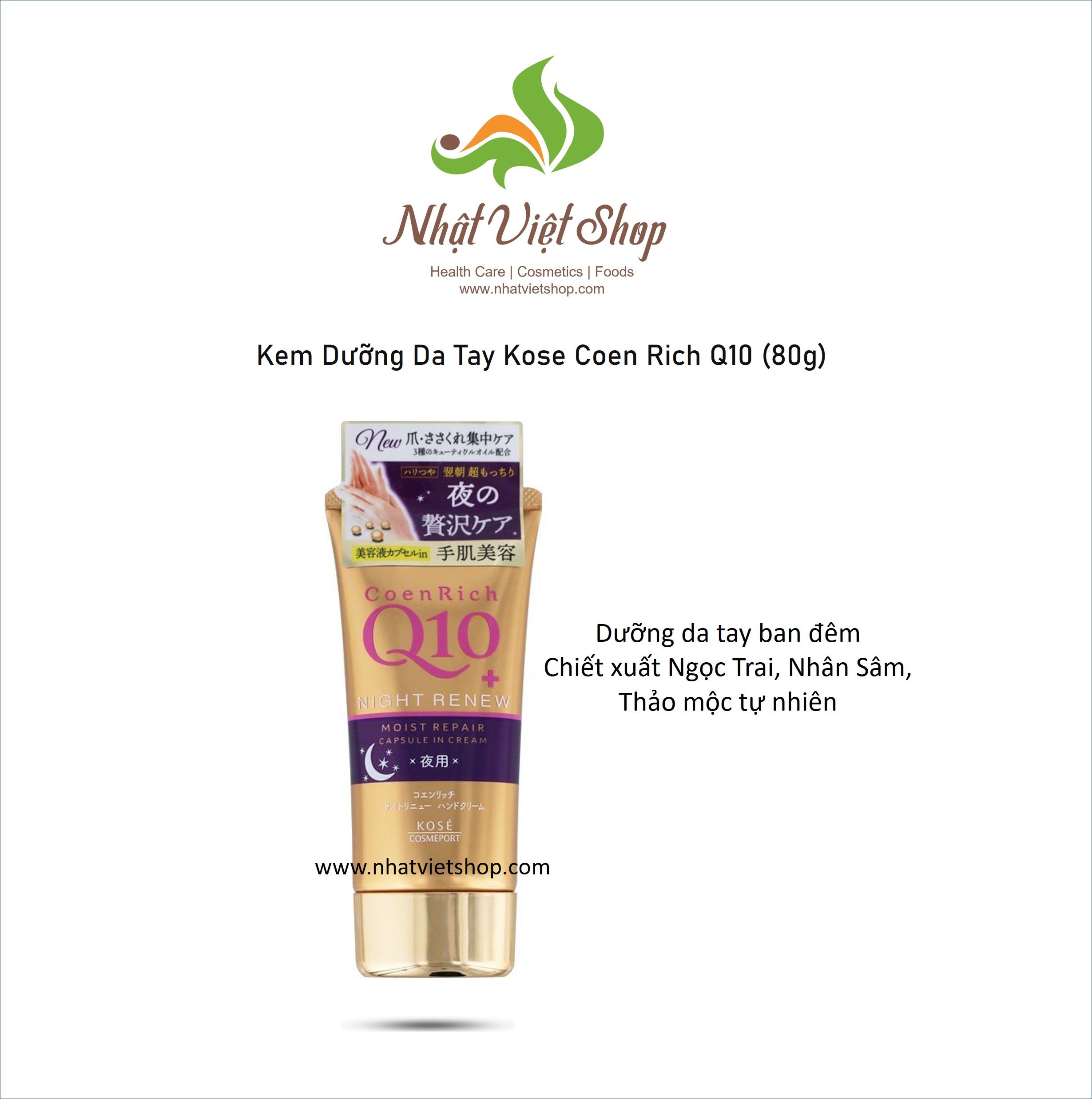 - Kem Dưỡng Da Tay Kose Coen Rich Q10 Whitening Thương hiệu: KOSE //=$row_detail['masp']?>