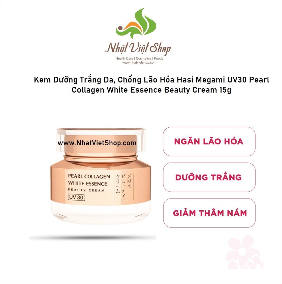 - Kem Dưỡng Trắng Da, Chống Lão Hóa Hasi Megami UV30 Pearl Collagen White Essence Beauty Cream 15g Thương hiệu: HASI KOKESHI //=$row_detail['masp']?>