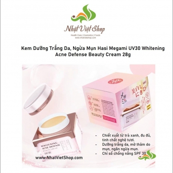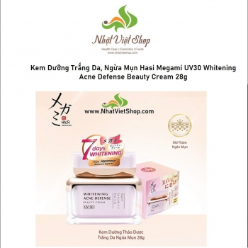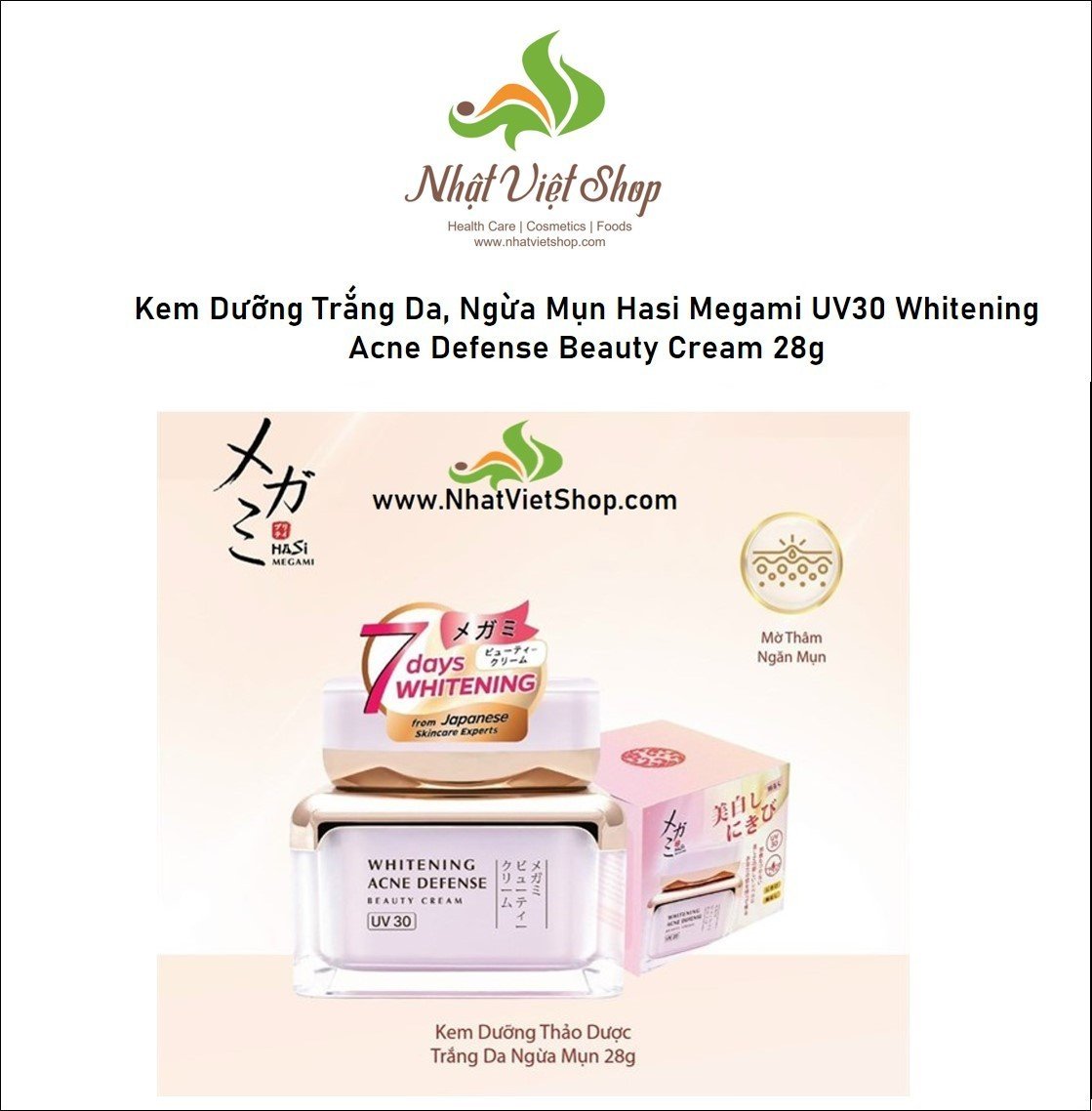 - Kem Dưỡng Trắng Da, Ngừa Mụn Hasi Megami UV30 Whitening Acne Defense Beauty Cream 28g Thương hiệu: HASI KOKESHI //=$row_detail['masp']?>