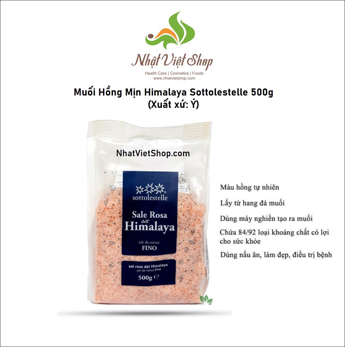 • Size: Muối Hồng Mịn Himalaya Sottolestelle 500gLoại Mịn 500gLoại Hạt 500g