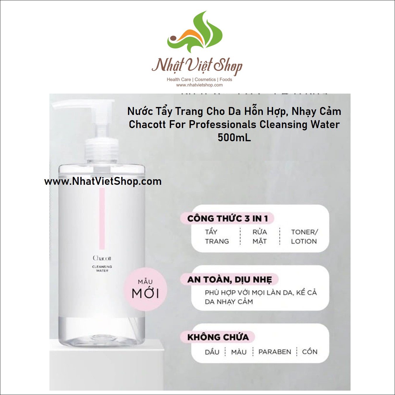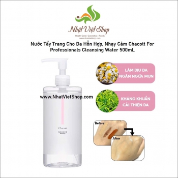 - Nước Tẩy Trang Cho Da Hỗn Hợp, Nhạy Cảm Chacott For Professionals Cleansing Water là sản phẩm tẩy trang dành cho da nhạy cảm, da mụn đến từ thương hiệu Chacott của Nhật Bản.
