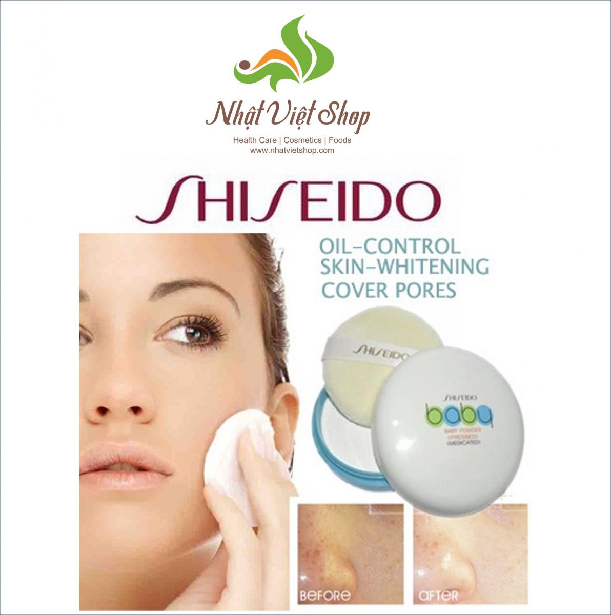 Làn da thường xuyên bị bóng nhờn gây nên mụn ẩn, mụn cám, mụn viêm hay lớp makeup bị loang lỗ, nhanh xuống tông,... phấn phủ Shiseido Baby Powder Pressed Medicated Nhật Bản giúp bảo vệ làn da khỏi khói bụi ô nhiễm môi trường, đồng thời giúp kiểm soát lượng dầu nhờn và giữ lớp trang điểm bền màu hơn.