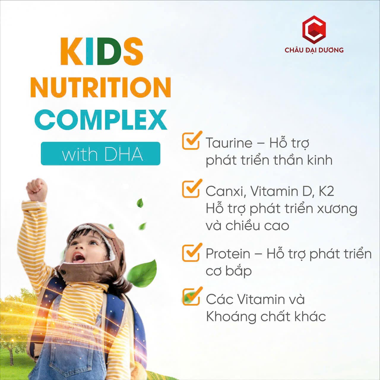27 loại vitamin và khoáng chất thiết yêu: Giúp trẻ bổ sung đầy đủ dưỡng chất cho cơ thể, hỗ trợ quá trình tăng trưởng, phát triển cơ bắp, xương khớp và có thể chất tốt.