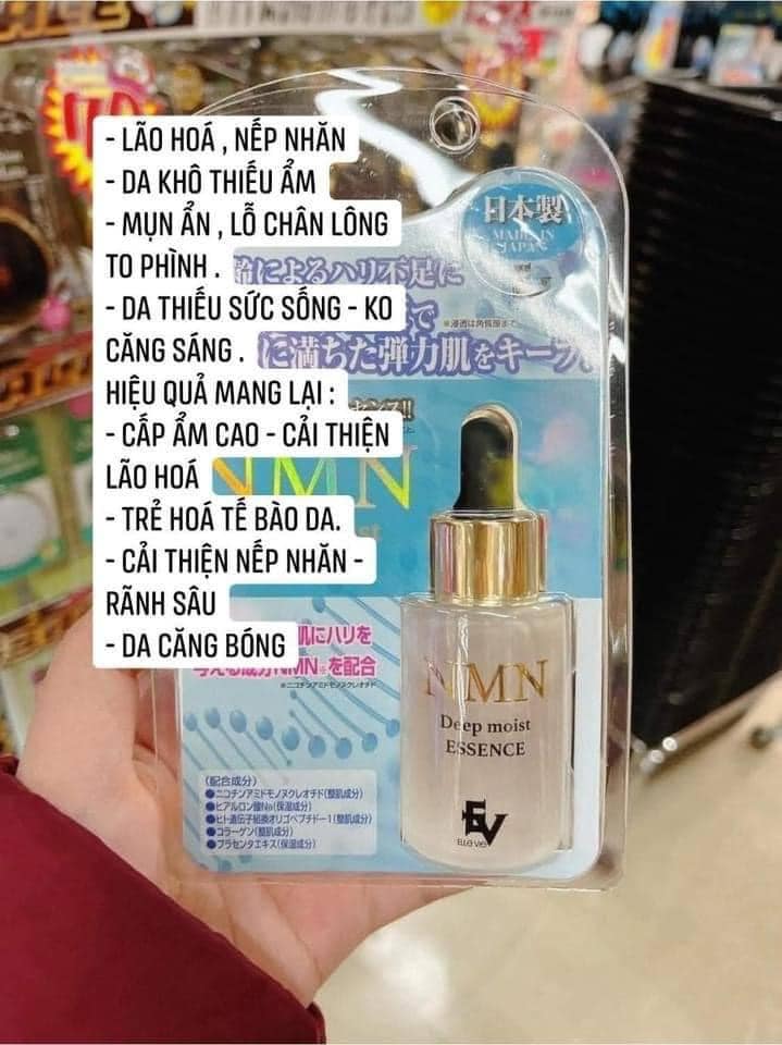 Serum NMN Deep Moist Essence được chiết xuất từ những thành phần làm đẹp “siêu đỉnh” như NMN, HA , Collagen peptide, Placenta, không chỉ cấp ẩm sâu cho da căng bóng, mịn màng mà còn “đảo chiều thời gian” đẩy lùi mọi dấu hiệu lão hóa, xóa mờ các khuyết điểm, nuôi dưỡng làn da sáng hồng khỏe đẹp từ sâu bên trong.