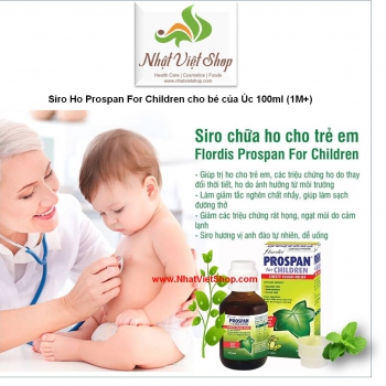 - Siro chữa ho cho trẻ em Flordis Prospan For Children 100ml là sản phẩm trị ho cho trẻ em tốt và an toàn nhất hiện nay. Prospan chứa chiết xuất lá cây độc quyền có thể hỗ trợ hô hấp, trị viêm phế quản mãn tính, tiêu đờm, giảm ngứa rát cổ họng, đau họng, sổ mũi do viêm họng gây ra. Sản phẩm của Úc đã được kiểm chứng an toàn đối với trẻ nhỏ.