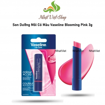 3. Son dưỡng môi Vaseline Blooming Pink color & care dạng thỏi 3g mang gam màu hồng cực kỳ nhẹ nhàng tựa như đóa hoa anh đào nở rộ. Blooming Pink là son dưỡng có màu nên có của những cô nàng dịu dàng, phù hợp với các bạn học sinh - sinh viên thêm phần tươi tắn khi đến trường.