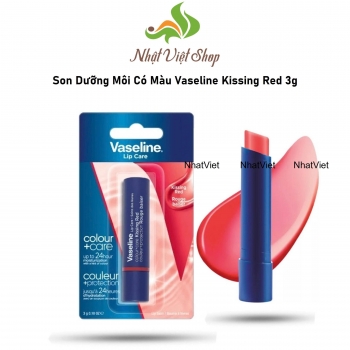 2. Son dưỡng môi Vaseline Kissing Red Colour+Care dạng thỏi 3g mang tone màu đỏ hồng nhẹ nhàng phù hợp với mọi cô nàng cũng như mọi phong cách. Chỉ với Kissing Red bạn dễ dàng sử dụng ở văn phòng, đôi môi luôn luôn căng mọng dù trong môi trường máy lạnh.