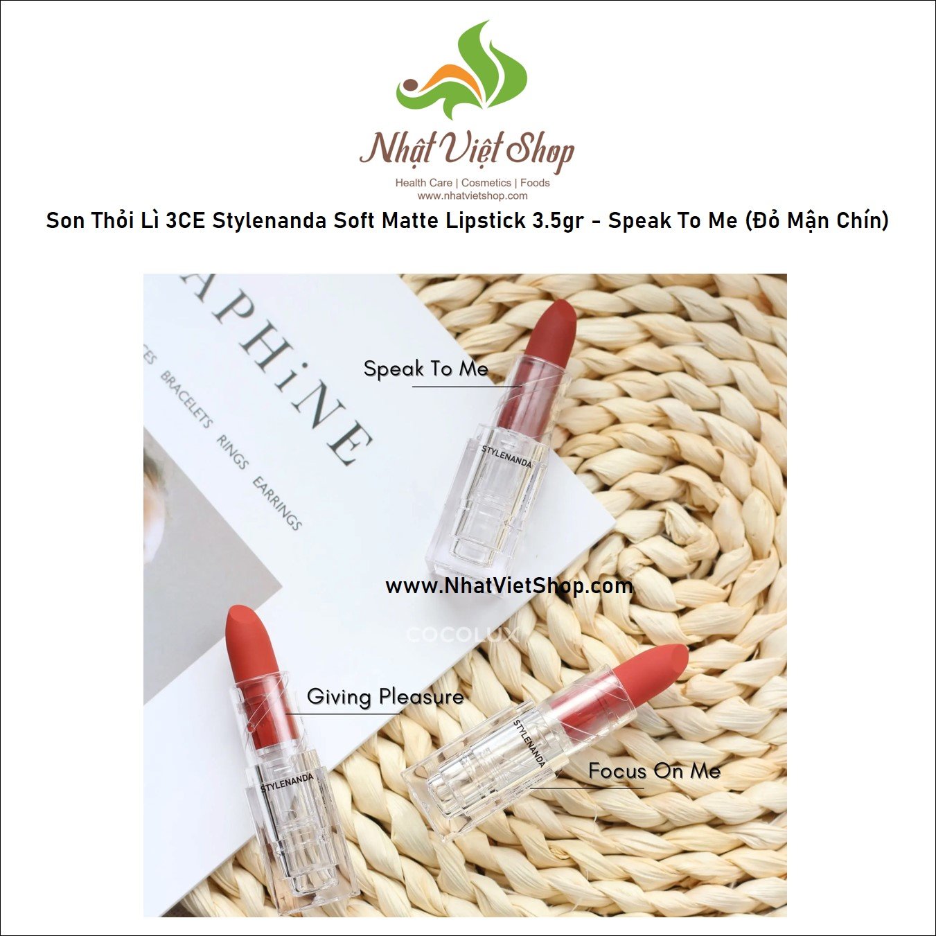 - Son Thỏi Lì 3CE Stylenanda Soft Matte Lipstick 3.5gr - Speak To Me (Đỏ Mận Chín) Thương hiệu: 3CE //=$row_detail['masp']?>