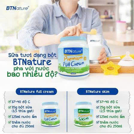 Bột sữa tách béo BTNature Premium là giải pháp hoàn hảo để bạn thưởng thức hương vị thơm ngon của sữa mà vẫn duy trì chế độ ăn uống lành mạnh và cân bằng. Được chế biến đặc biệt cho những ai tìm kiếm dinh dưỡng mà không cần thêm chất béo, cung cấp tất cả lợi ích của sữa tươi trong dạng bột tiện lợi, dễ sử dụng. Mặc dù hàm lượng chất béo thấp, sản phẩm vẫn giữ được độ kem và mịn mà bạn yêu thích, mang đến trải nghiệm hương vị phong phú và thỏa mãn.