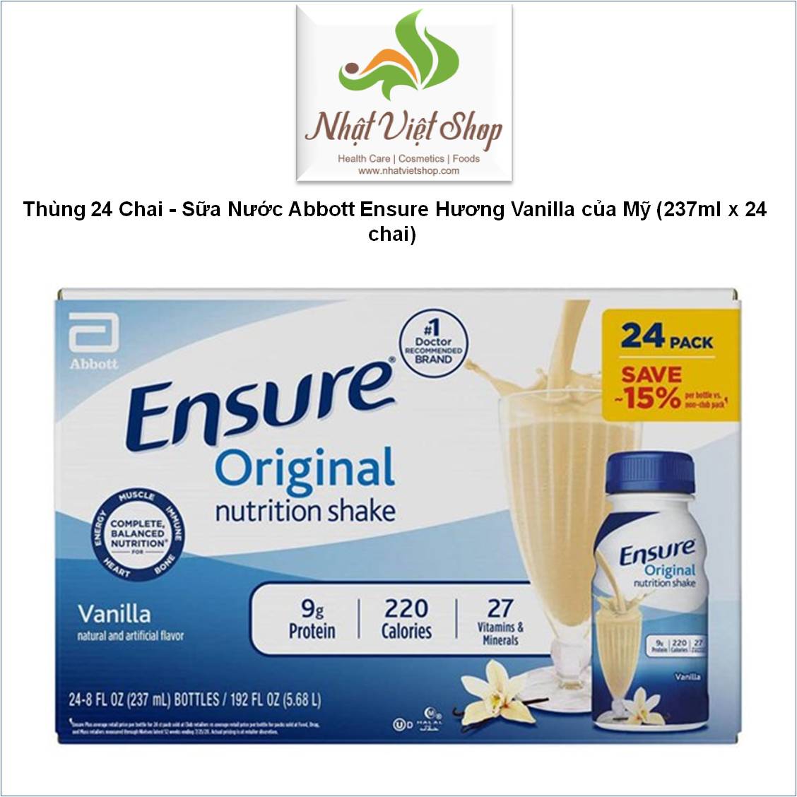 Sữa Nước Abbott Ensure Hương Vanilla của Mỹ nhãn hiệu số 1 của Mỹ về dinh dưỡng. Cung cấp cho bạn đầy đủ nguồn dinh dưỡng để cân bằng sức khoẻ, tiếp thêm năng lượng và tràn đầy sức sống.