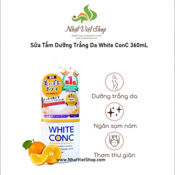 Dưỡng trắng da là một trong những bước skincare được các chị em quan tâm nhiều nhất. Song để tìm được sản phẩm phù hợp mà vẫn đảm bảo thân thiện với làn da, đặc biệt không làm da trắng xanh mất thẩm mỹ thì đúng là hơi khó. Nhưng chị em đừng quá lo vì nhà Bo đã tìm ra cho các nàng sản phẩm ưng ý rồi đây. White Conc là một trong những thương hiệu cực kì được ưa chuộng ở Nhật Bản, em sữa tắm trắng da này có tên đầy đủ là White Conc Body Vitamin C. Sữa tắm White Conc Body Vitamin C là sản phẩm chăm sóc cơ thể nằm trong bộ sưu tập dưỡng trắng toàn thân được chiết xuất từ các thành phần dưỡng trắng tự nhiên rất lành tính cho da. Nhờ đó mà sản phẩm mang lại cho phái đẹp làn da trắng sáng tự nhiên không trắng bệt và an toàn cho mọi loại da.