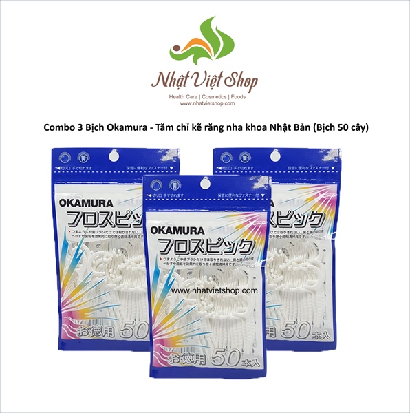 Combo 3 Bịch Okamura - Tăm chỉ kẽ răng nha khoa Nhật Bản (Bịch 50 cây) Aquapulse