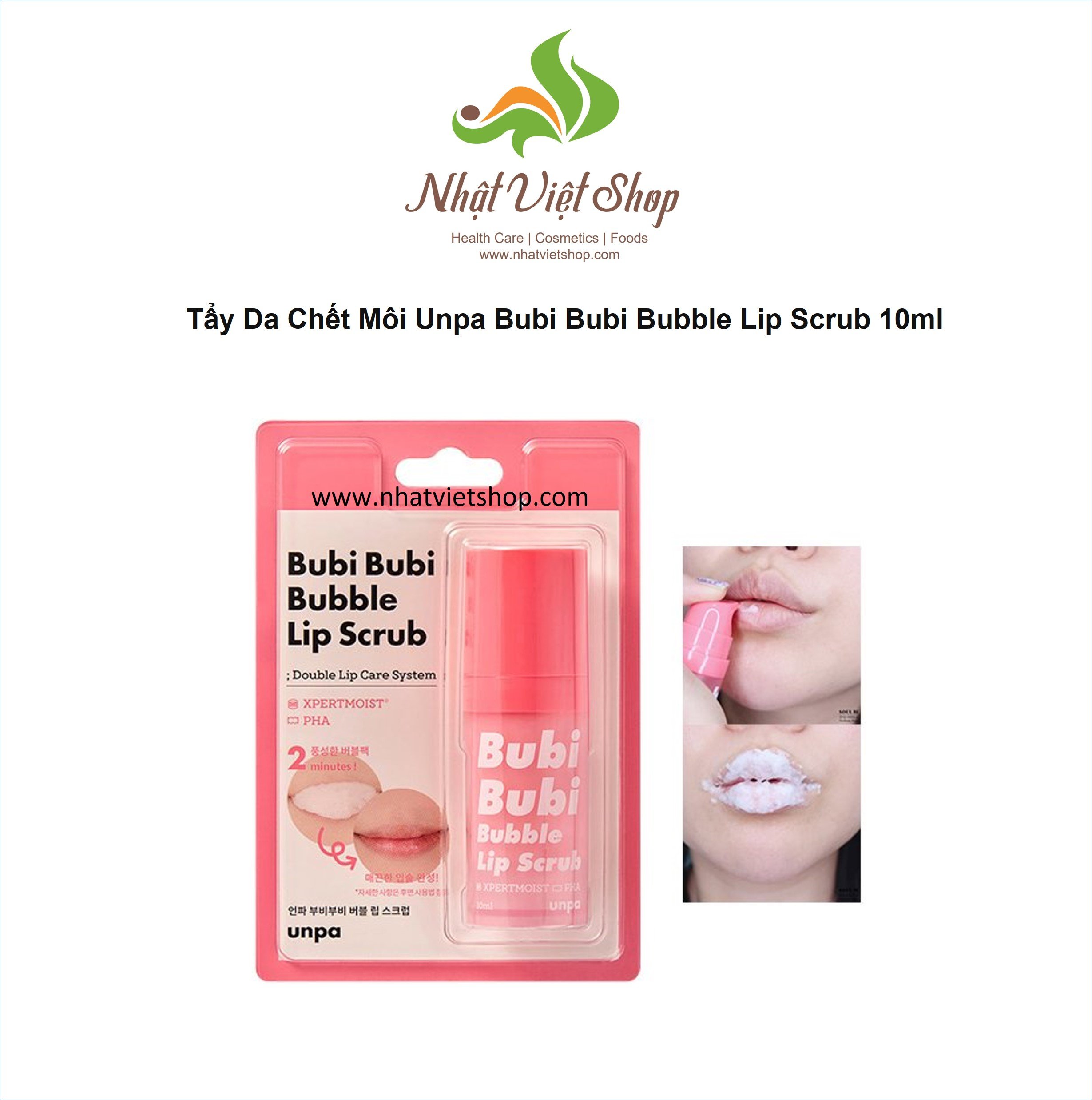 - Tẩy Tế Bào Chết Sủi Bọt Cho Môi Unpa Bubi Bubi Bubble Lip Scrub với phiên bản mới được nâng cấp giúp mang lại hiệu quả tối đa trong việc loại bỏ lớp tế bào da chết gây khô môi, giảm việc kích ứng cho môi mỏng manh nhạy cảm, đồng thời cấp ẩm cho môi với công thức mới mạnh mẽ hơn