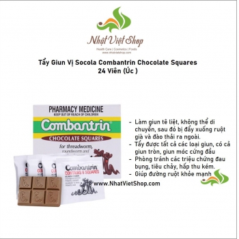• - Thuốc tẩy giun Úc Combantrin Chocolate Squares giúp tẩy các loại giun hiệu quả, đặc biệt là các loại giun hiếm, giun tròn, giun kim, giun móc cứng đầu…
