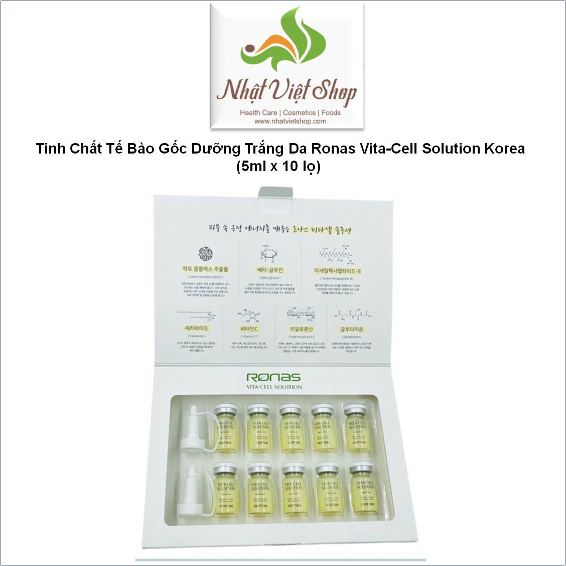• Tinh Chất Tế Bào Gốc Dưỡng Trắng Da Ronas Vita-Cell Solution Korea (5ml x 10 lọ)