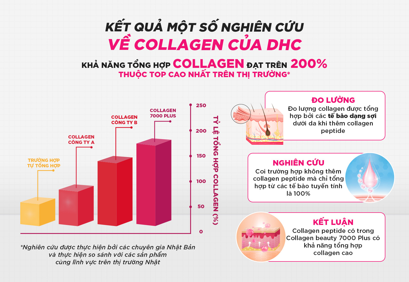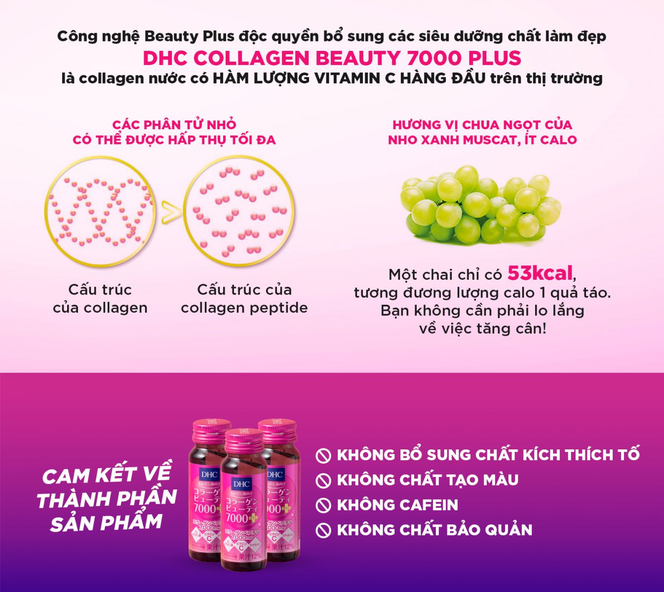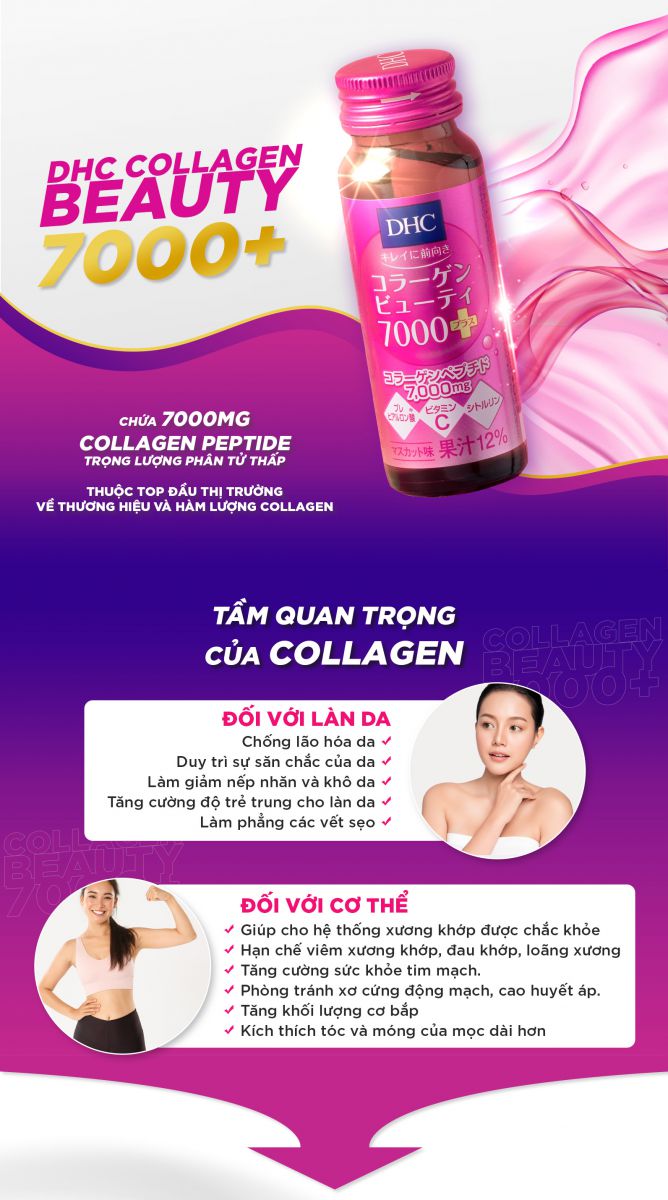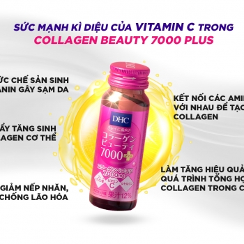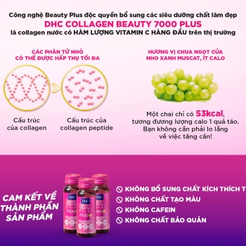 Collagen Beauty DHC là collagen được bào chế collagen từ da cá có kích thước phân tử lớn và cấu trúc chuỗi dài của rất nhiều các axit amin, Tripeptide Collagen Beauty 7000 giúp cơ thể dễ hấp thu, thúc đẩy sản xuất và tăng hàm lượng collagen trong da, xương, giúp làn da căng mịn, tươi trẻ tràn đầy sức sống.