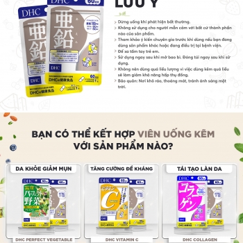 - Ngoài ra, trong viên uống bổ sung kẽm DHC còn có Crom và Selen, hai khoáng chất giúp bổ trợ cho kẽm hoạt động tốt hơn.