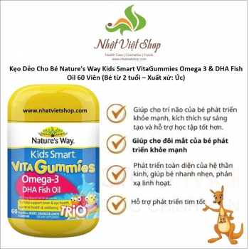 • Kẹo dẻo dầu cá Nature’s Way Kids Smart Vita Gummies Omega 3 Fish Oil 60 viên của Úc cũng như Dầu cá Kids Smart Complete Mulltivitamin + Fish Oil là sự lựa chọn khôn ngoan và tuyệt vời của Mẹ dành cho bé