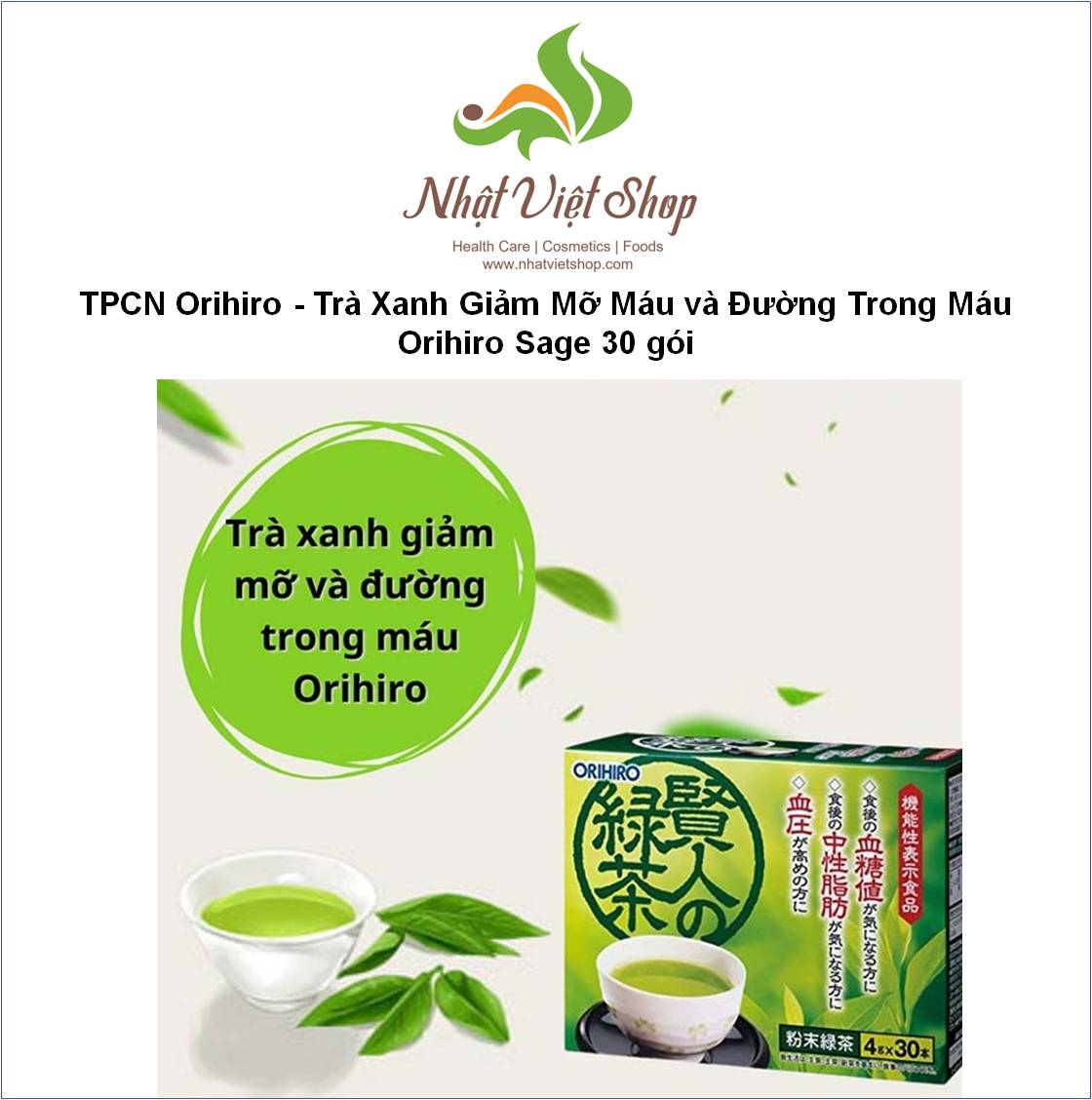 • TPCN Orihiro - Trà Xanh Giảm Mỡ Máu và Đường Trong Máu Orihiro Sage 30 gói