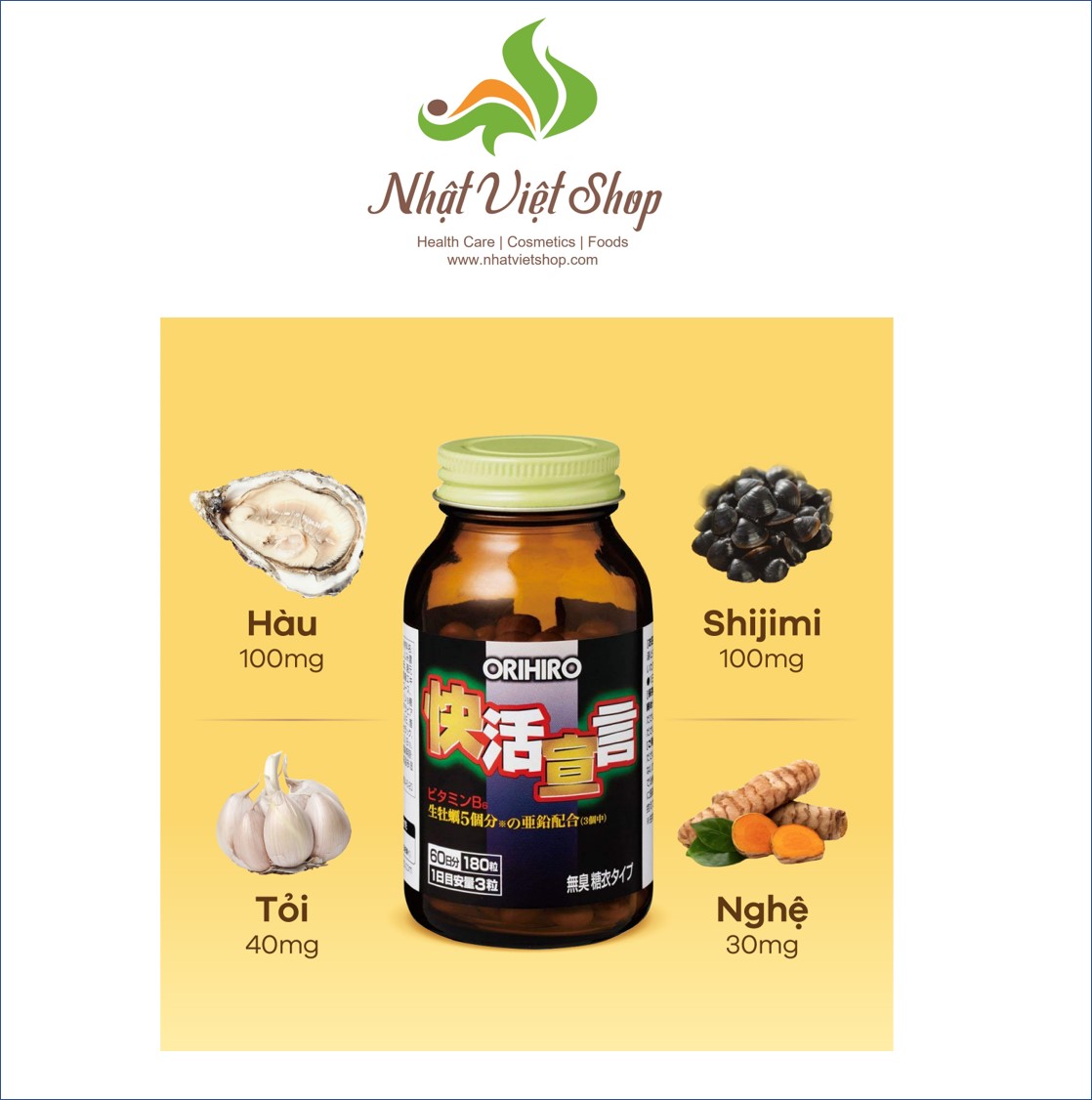 Thành phần Tinh Chất Hàu Tỏi Nghệ Orihiro Nhật Bản 180 viên -