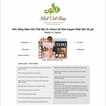 - Viên Uống Giảm Cân Thải Độc Dr Detoxi 4D Diet Supple Nhật Bản 30 gói là Hàng Nhật cao cấp cho người Nhật đã được tin dùng tại thị trường nội địa và bán phổ biến ở một số nước châu Á. Sản phẩm không gây mệt mỏi, mất ngủ, mất nước,... dễ dàng hấp thu vào cơ thể.