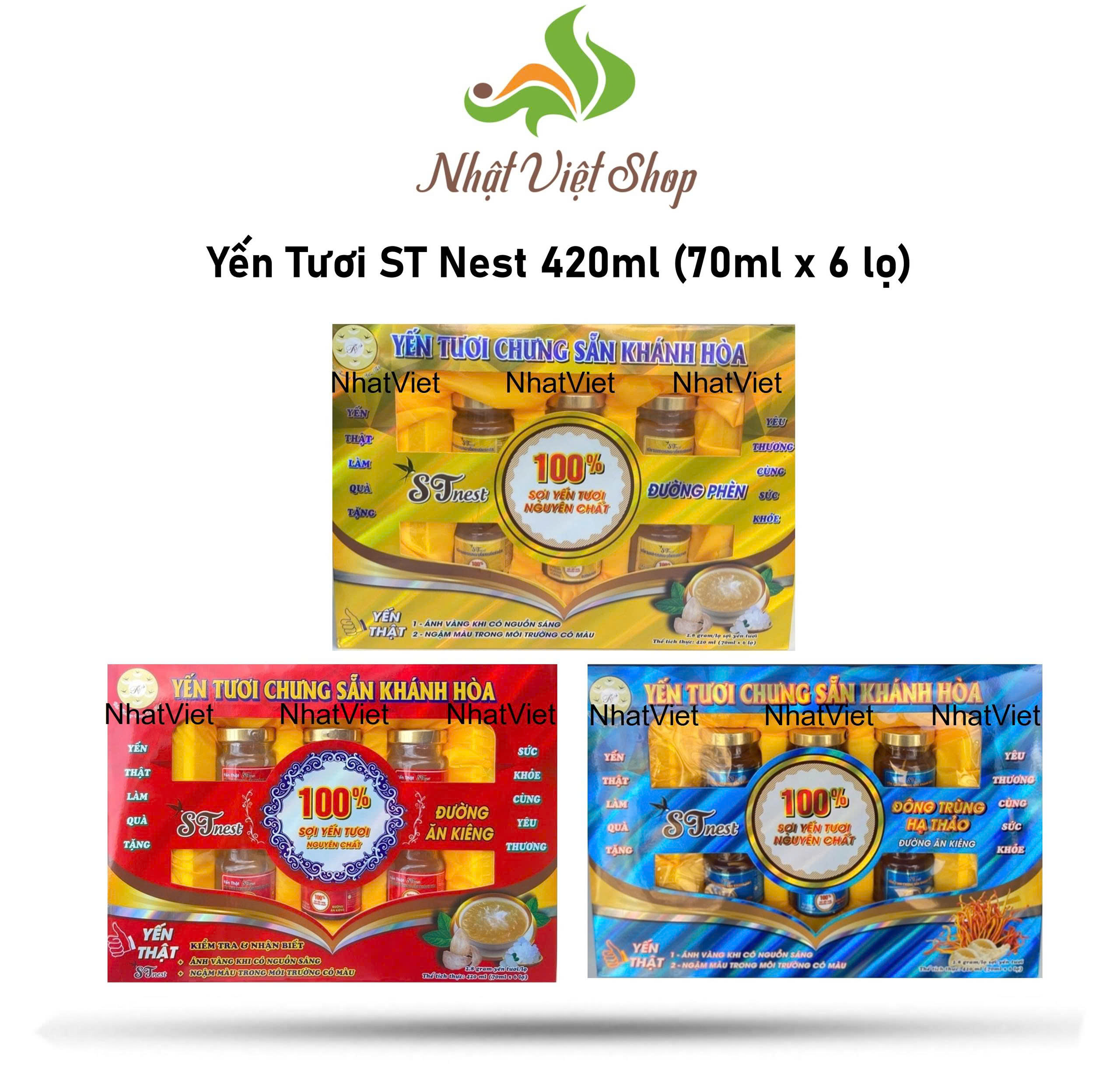 Yến Tươi ST Nest Đường Phèn 420ml (70ml x 6 lọ)Yến Tươi ST Nest Đông Trùng Hạ Thảo 420ml (70ml x 6 lọ)Yến Tươi ST Nest Đường Ăn Kiêng 420ml (70ml x6 lọ)